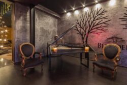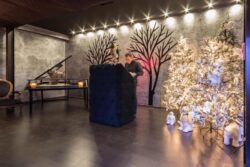 Στην είσοδο του χώρου δημιουργήθηκε ένα θέμα με τρία χιονισμένα χριστουγεννιάτικα δέντρα με λαμπάκια. Τα δέντρα στολίστηκαν με χριστουγεννιάτικες φιγούρες όπως αρκούδες, πιγκουίνους, ελαφάκια, σκιουράκια και γούνινα λουλούδια. Ένας κεραμικός πίθηκος τοποθετήθηκε πάνω στο πιάνο με χρυσό γκλίτερ να καλύπτει την επιφάνεια του. Μία χρυσή κουκουβάγια τοποθετήθηκε πάνω στη reseption.