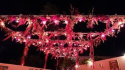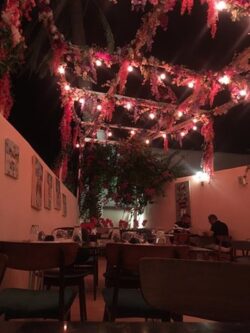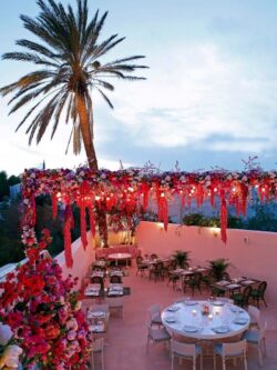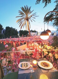 Το μπαλκόνι στην είσοδο ντύθηκε με φούξια βοκαμβίλιες και ροζ ορχιδέες. Ένας πολύχρωμος, παραμυθένιος κήπος δημιουργήθηκε για το μοναδικό Artisanal στη Μύκονο! Η πέργκολα, οι κουπαστές και τα μπαλκόνια της αυλής ντύθηκαν με τεχνητά λουλούδια σε φούξια, λιλά και ροζ αποχρώσεις. Μία επιβλητική κατασκευή από υφασμάτινα λουλούδια σε έντονες αποχρώσεις του κατασκευάστηκε από την ομάδα του ΝEDA Decorations. Χρώματα πλημμυρίζουν τον χώρο και τις αισθήσεις. Ένας τέλειος χώρος για να απολαύσεις ένα ιδιαίτερο γεύμα και ένα δροσερό cocktail στον γεμάτο λουλούδια κήπο του Artisanal…