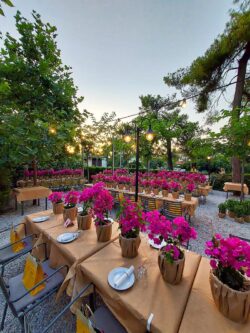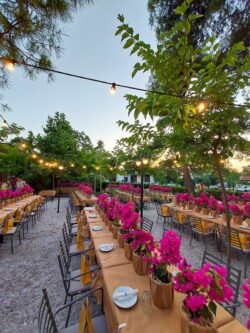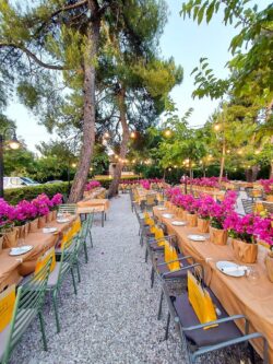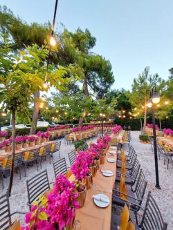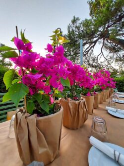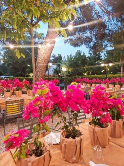 Διακόσμηση Εταιρικού Event για τα γενέθλια της CEO της Spetses Marathon στο εστιατόριο Ελευθεριάδης στη Δροσιά. Έναν ιδιαίτερο στολισμό επιλέξαμε για τα τραπέζια των καλεσμένων με μικρές γλάστρες βουκαμβίλιας τυλιγμένες σε craft χαρτί αφής. Το φούξια χρώμα της βουκαμβίλιας έδωσε μια ξεχωριστή αίσθηση στο κήπο του εστιατορίου.