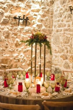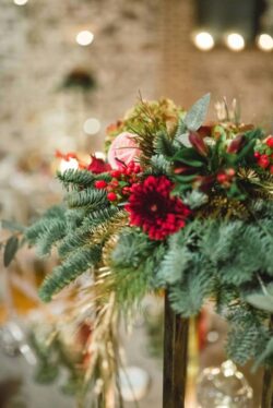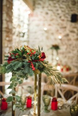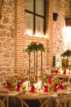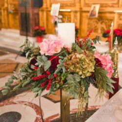 Ένας άκρως Elegant και Χριστουγεννιάτικος Γάμος ήταν αυτός της Σοφίας και του Βαγγέλη. Επειδή επιλέχθηκε να πραγματοποιηθεί την περίοδο των Χριστουγέννων, αποφασίσαμε να διατηρήσουμε το γιορτινό κλίμα. Έτσι, «παίξαμε» με το κόκκινο, το κυπαρρισί και το χρυσό ενώ προσθέσαμε και ροζ πινελιές.