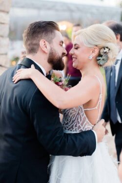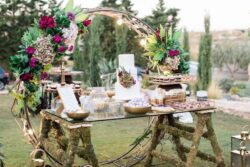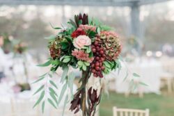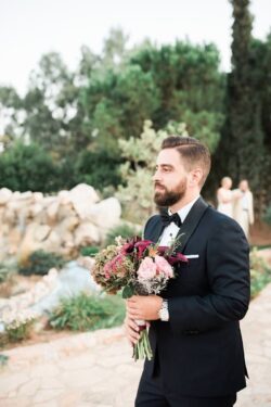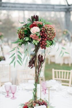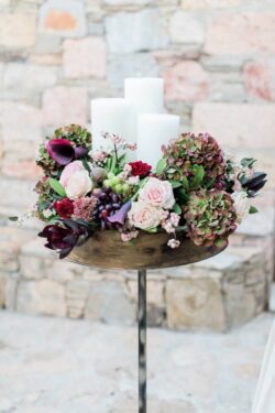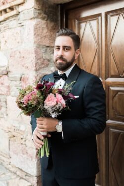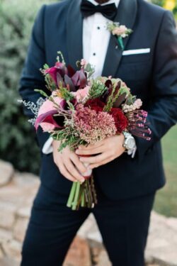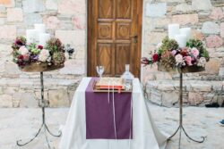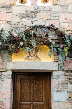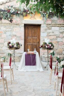 Ο Γάμος του Βασίλη και της Χαριτίνης πραγματοποιήθηκε στο κτήμα domain karras στο Μαρκόπουλο. Τα λουλούδια που επιλέξαμε με το ζευγάρι ήταν ορτανσίες, τριαντάφυλλα, χρυσάνθεμα, σέντουμ, λευκόδενδρο, σταφύλια, σύκα, κάλες και συμφορίκαρπος. Ο στολισμός της εκκλησίας στην πρόσοψη ηταν με μία εντυπωσιακή κατασκευή από ξύλινα κλαδιά και φυσικά λουλούδια. Οι λαμπάδες γάμου ήταν δύο μεταλλικά χρυσά μανουάλια με τρία άνισα κεριά. Το σετ γάμου επιλέχθηκε επίσης από το κατάστημα μας. Οι καρέκλες στη διαδρομή προς την εκκλησία στολίστηκαν με ένα τριαντάφυλλο και μπορντό σατέν κορδέλα. Η γωνιά ρυζιού που δημιουργήσαμε ήταν ένα μεταλλικό χρυσό μανουάλι με χωνάκια. Η νυφική ανθοδέσμη άκρως εντυπωσιακή από τα λουλούδια που επέλεξε το ζευγάρι για το στολισμό. κουάφ νύφης καθώς και βραχιόλια κουμπάρας δημιουργήθηκαν από safari και παχύφυτα.