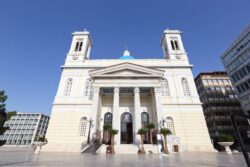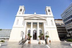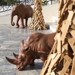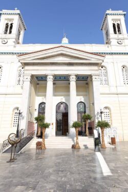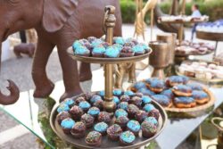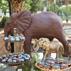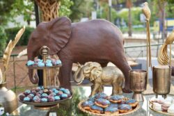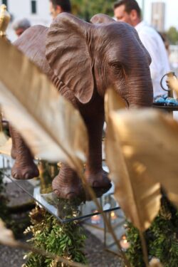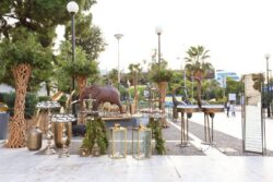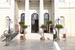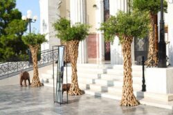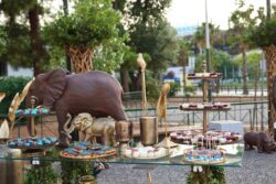 Στολισμός βάπτισης για αγόρι με θέμα Jungle στον Άγιο Νικόλαο Πειραιά. Στον εξωτερικό στολισμό της εκκλησίας τοποθετήσαμε πέντε εντυπωσιακά δέντρα από φυσικά ξύλα σε συνδυασμό με μπάλες από σκίνο. Διακοσμητικές κεραμικές φιγούρες άγριων ζώων τοποθετήθηκαν στο κάτω μέρος του κάθε δέντρου. Ένας μεγάλος ελέφαντας, δύο ρινόκεροι και ένας υπέροχος μαύρος πάνθηρας ήταν τα ζώα που επιλέξαμε. Ένας μεταλλικός καθρέφτης σε μοντέρνο ύφος με το όνομα του παιδιού πλαισίωσε ιδανικά το εντυπωσιακό θέμα. Ακόμα, δύο εντυπωσιακοί μεταλλικοί γερανοί σε χρυσό χρώμα ολοκλήρωσαν την μοναδική διακόσμηση της εκκλησίας.
